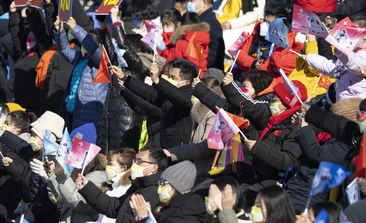 2022北京冬奥会自由式滑雪女子大跳台决赛,现场观众为选手加油助威。 图片来源:IC photo