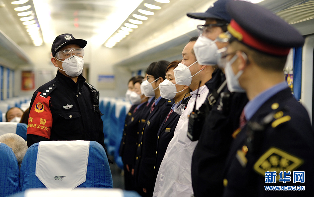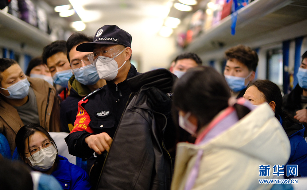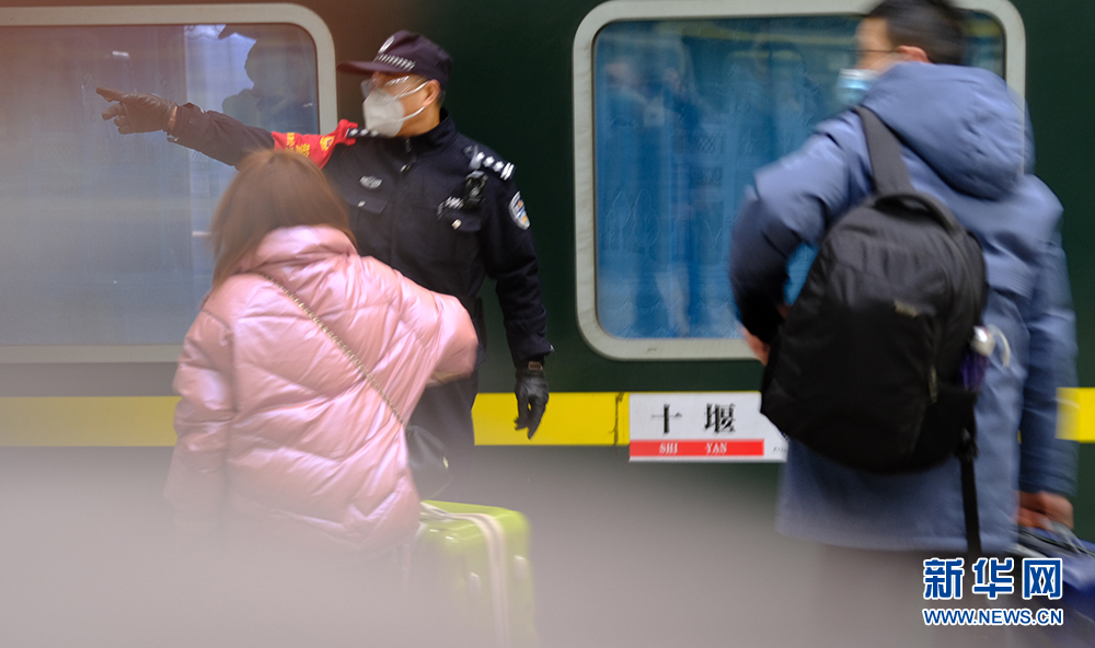 乘警蒋大兵引导乘客有序登车。新华网发 贺瑞明摄