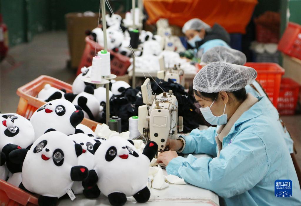 冬奥吉祥物“冰墩墩”成新晋“顶流”,从大年初五开始,位于福建省泉州晋江市的一家特许生产商提前复工,调配工人和设备加紧生产,以满足各大渠道需求。