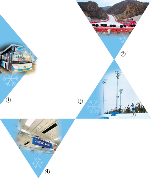 图①:2月10日,张家口赛区内用于媒体交通保障的氢燃料大巴正在运行中。本报记者 孙亚慧摄