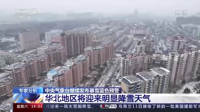 本周末华北大部有雪 南方持续阴冷今明两天,我国雨雪天气增多,北方降雪逐渐发展增强,中央气象台10时继续发布暴雪蓝色预警,预计新疆伊犁河谷、山西北部、北京西部、河北中部和西北部、天津南部,以及云南东北部、贵州北部、湖南西北部等地的高海拔地区有大雪。