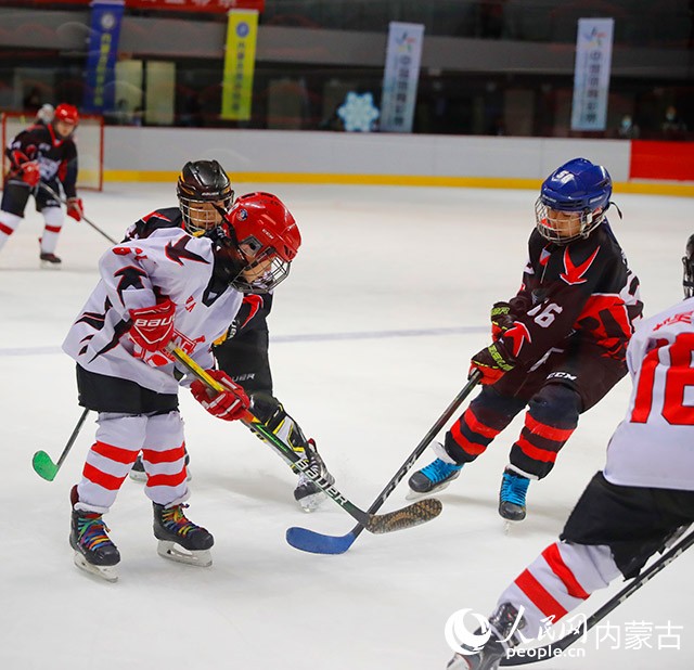 内蒙古师范大学附属第二中学的刘一博已经打了4年冰球,12岁的他穿上冰鞋后身高接近180厘米。男孩笑容阳光,非常帅气。“我小时候身体很弱,为了强健体魄,所以加入了冰球队,开始打冰球。”刘一博说:“一开始就是瞎闹着玩儿,但是现在是真心喜欢。打冰球不仅让我的身体素质提高了,还让我交到了非常多的好朋友。”