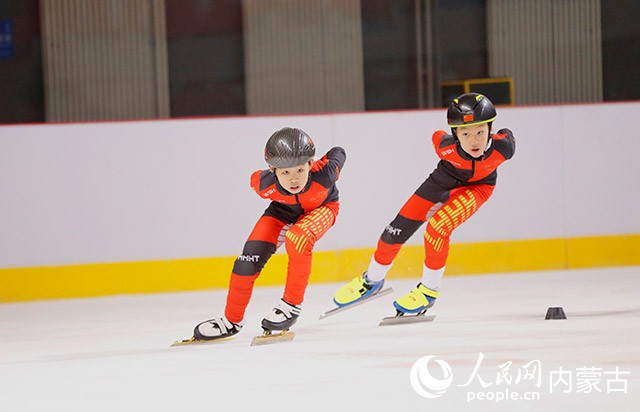 青少年速滑运动员正在冰场训练。人民网 刘艺琳摄