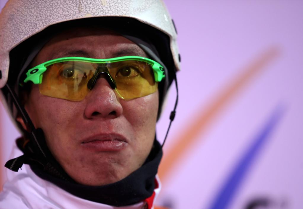 2018年2月18日,中国选手贾宗洋在2018年平昌冬奥会自由式滑雪男子空中技巧决赛成绩公布后。新华社记者费茂华摄