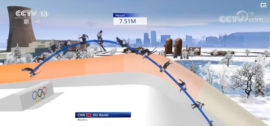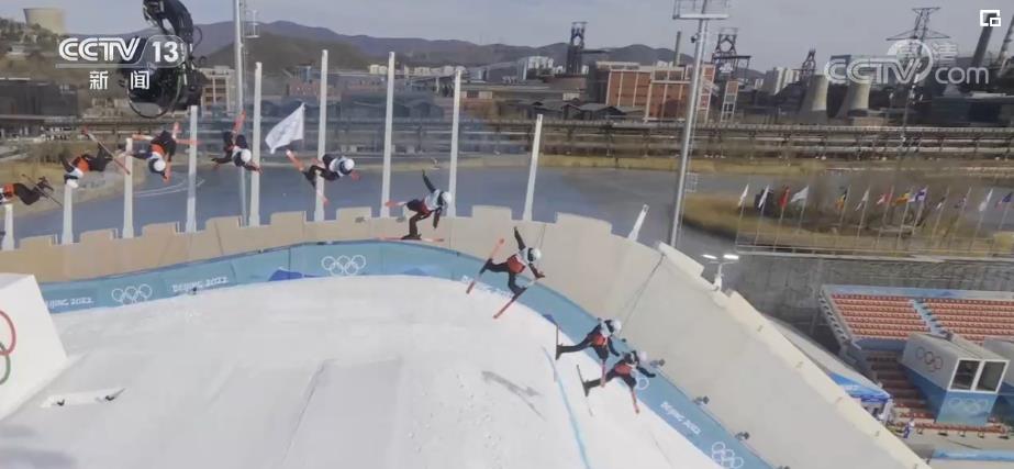 据总台北京冬奥会特种设备现场负责人韩铮介绍,采用类似于多次曝光的手法,呈现了一次全新的特技效果,这个就称为时间切片。