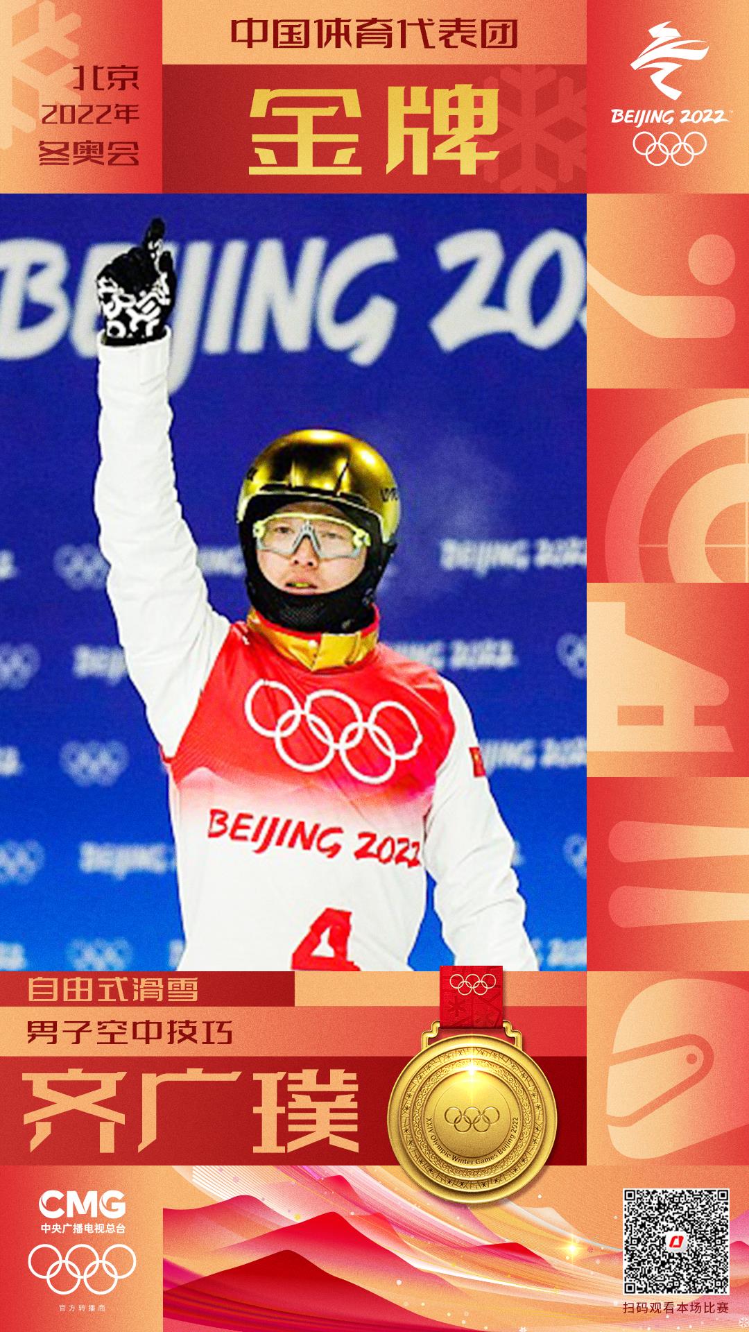 在刚刚结束的自由式滑雪男子空中技巧决赛中,中国队选手齐广璞战斗力满格,发挥极为出色,稳稳将金牌收入囊中。这是中国空中技巧男队继2006年在都灵冬奥会上摘得首金后,再次在该项目上夺冠。逐梦四届冬奥,齐广璞今朝梦圆。