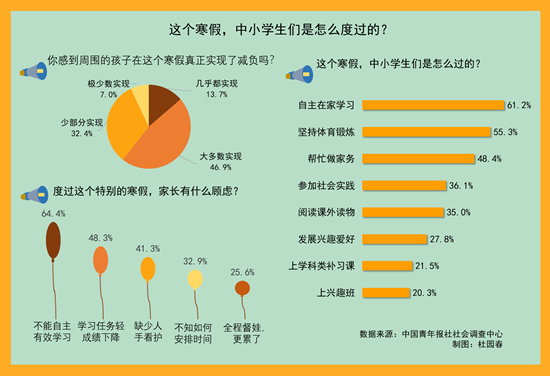 60.6%受访家长感到身边大多数孩子在这个寒假实现了减负