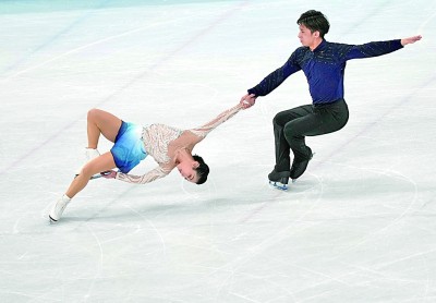 隋文静(左)/韩聪在比赛中。光明日报记者 郭红松摄/光明图片