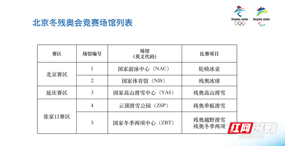 北京冬残奥会竞赛场馆列表