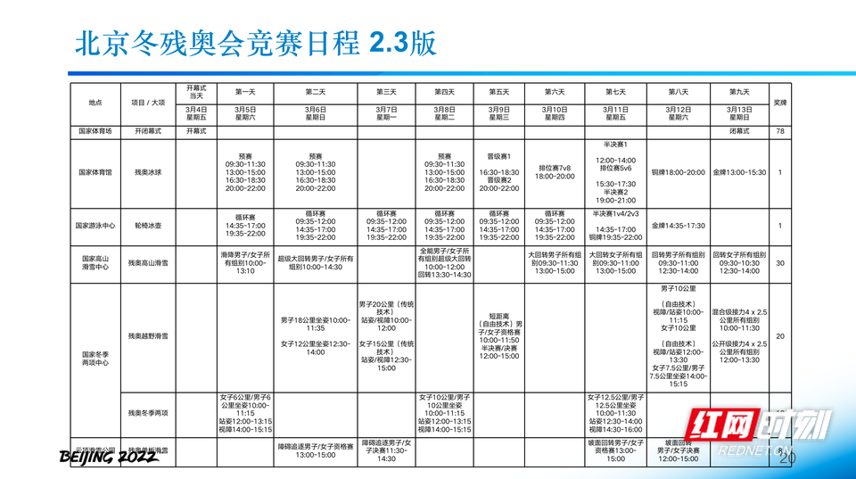 北京冬残奥会竞赛日程