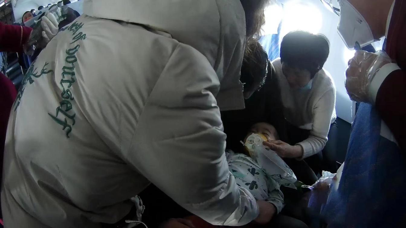 2月17日,南航CZ3127长沙—北京大兴航班上,距离飞机着陆仅剩两分钟。乘客中,一名一岁左右的婴儿在母亲怀中全身抽搐,口中还不断流出粘稠透明的液体。南航的乘务员立即拿来氧气瓶和面罩,和飞机上的医生旅客一起救治婴儿,最后紧急送往医院。后来婴儿的家长主动和南航乘务组联系,并告知孩子身体基本已经恢复,非常感谢他们在飞机上为孩子做的一切。