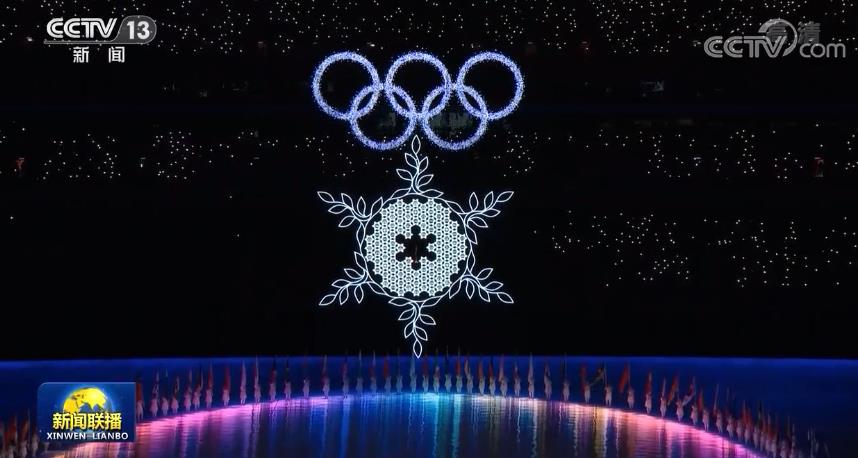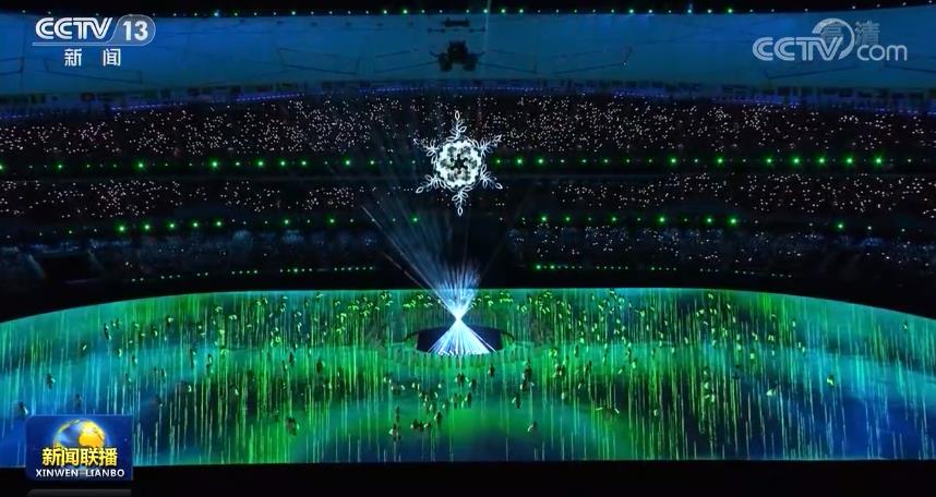 20时整,闭幕式开场表演《点亮》开始了。孩子们手提雪花花灯,以元宵节闹花灯的传统,点亮了场地上的“冬”字会徽。
