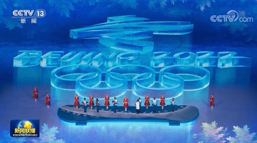 大屏幕播放短片《再见!一起向未来!》,在本届冬奥会即将结束的时刻,定格下中国人民同世界各地来宾依依惜别的情谊。