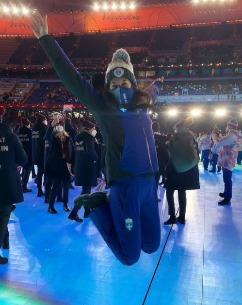 22日,希腊运动员玛丽亚·恩塔努在海外社交媒体“照片墙”上晒出参加北京冬奥会闭幕式的照片,向北京致谢,并表示这是一届非凡的奥运会。