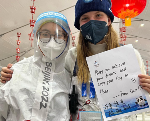 当地时间22日,美国自由式滑雪运动员汉娜·福尔哈伯在海外社交媒体“照片墙”上分享了在北京冬奥会期间与志愿者和队友的合影,称这些是她的“最爱时刻”。她也发文感谢冬奥会给她带来的绝佳体验,称自己永远不会忘记。