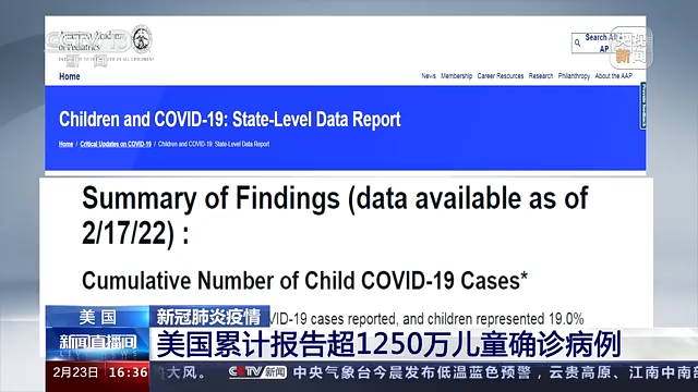 据美国儿科学会和儿童医院协会22日发布的最新报告,自新冠疫情暴发以来,美国累计超过1250万名儿童确诊感染新冠病毒。