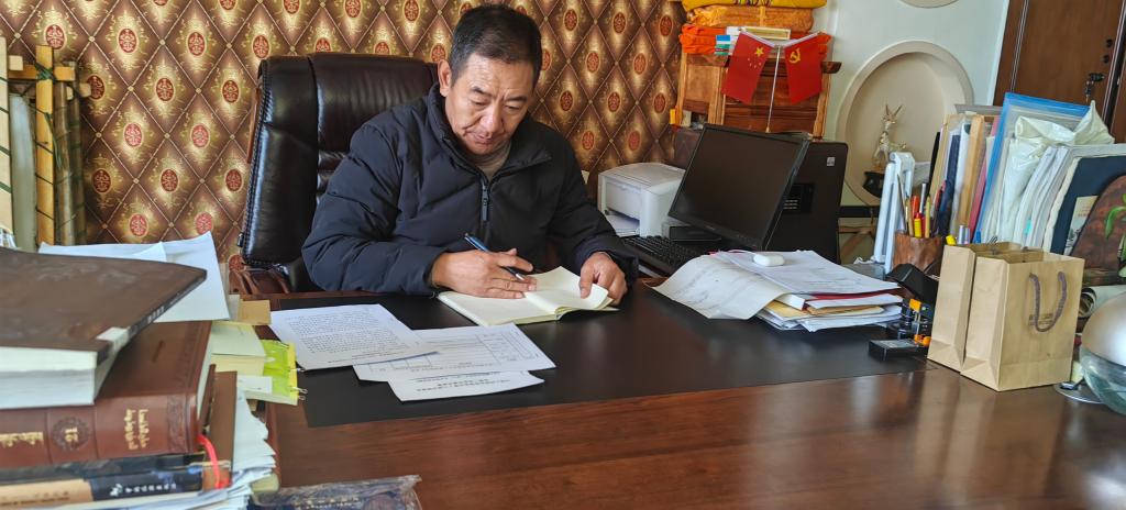 罗布斯达在整理调研笔记。 新华社记者 范帆 摄