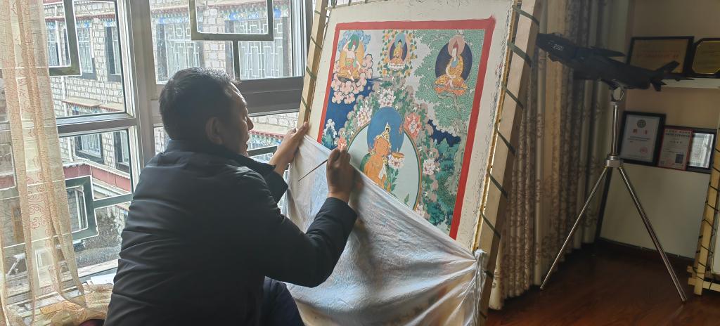 这些年来,在国家和地方政府的支持下,唐卡画院累计投入1000多万元,免费培养专业唐卡画师300多名,并带动上千人就业,不仅为西藏唐卡艺术的保护、传承和发展作出巨大贡献,也为西藏的特色文化产业发展和乡村振兴提供内生动力。