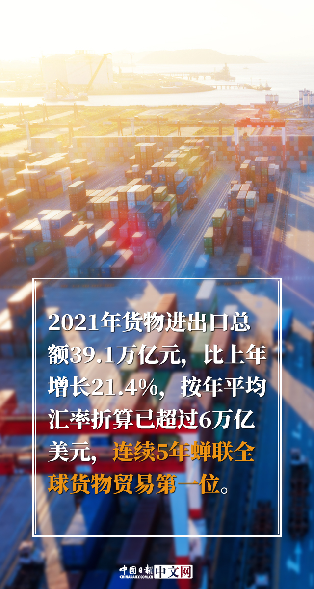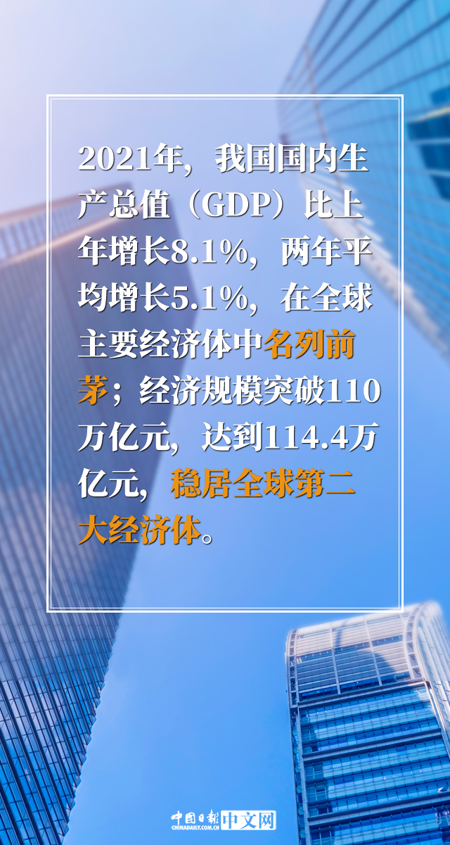 2021年,我国成功战胜疫情等多重挑战,经济实力、社会生产力和综合国力稳步提高,改革开放创新深入推进,民生福祉持续提升,实现了“十四五”良好开局。最新发布的《2021年国民经济和社会发展统计公报》显示,2021年,我国国内生产总值(GDP)比上年增长8.1%,两年平均增长5.1%,在全球主要经济体中名列前茅;连续5年蝉联全球货物贸易第一位;主要工业产品产量稳居世界首位……我国递出了一份亮眼的“成绩单”。