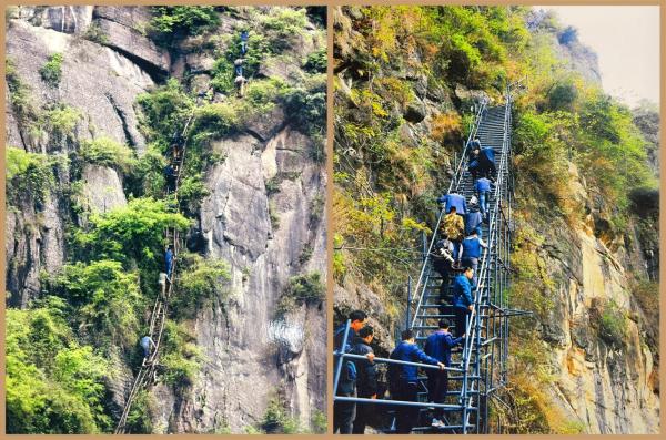 陡峭悬崖上摇摇欲坠的藤梯