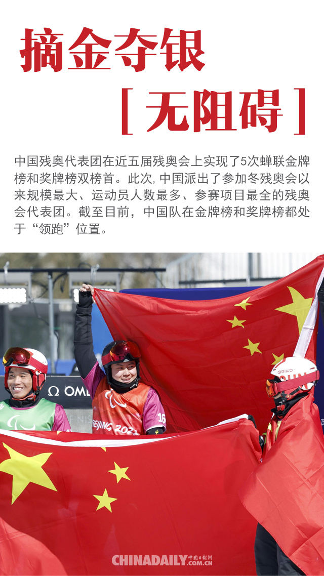 编者按:2022年北京冬残奥会赛程已经接近尾声。中国军团表现优异,截至目前,共收获14金14银19铜,金牌与奖牌双榜稳居第一,多数项目实现历史突破。残疾人运动员们因为拼搏而闪闪发光,在赛场上自由“飞翔”。他们通过自身努力赛出水平、活出精彩人生,成为我们每个人心目中的英雄。