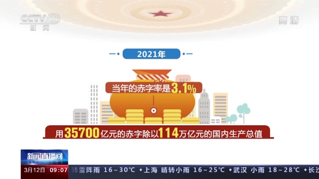 积极财政政策中有一个指标叫做赤字率,是国际上衡量财政风险的一个重要指标。通常认为实施积极财政,要调高赤字率。但是根据昨天表决通过的政府工作报告,2022年,赤字率拟按2.8%左右安排,比去年预算下降0.4个百分点。这是为什么呢?