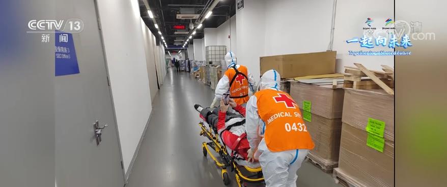 比赛开始前,国家体育馆的医护人员正在对医疗单兵设备进行系统联通测试。通过这个设备,赛场内医疗救治的实时高清画面就可以传输到北京冬残奥会的医疗终端。