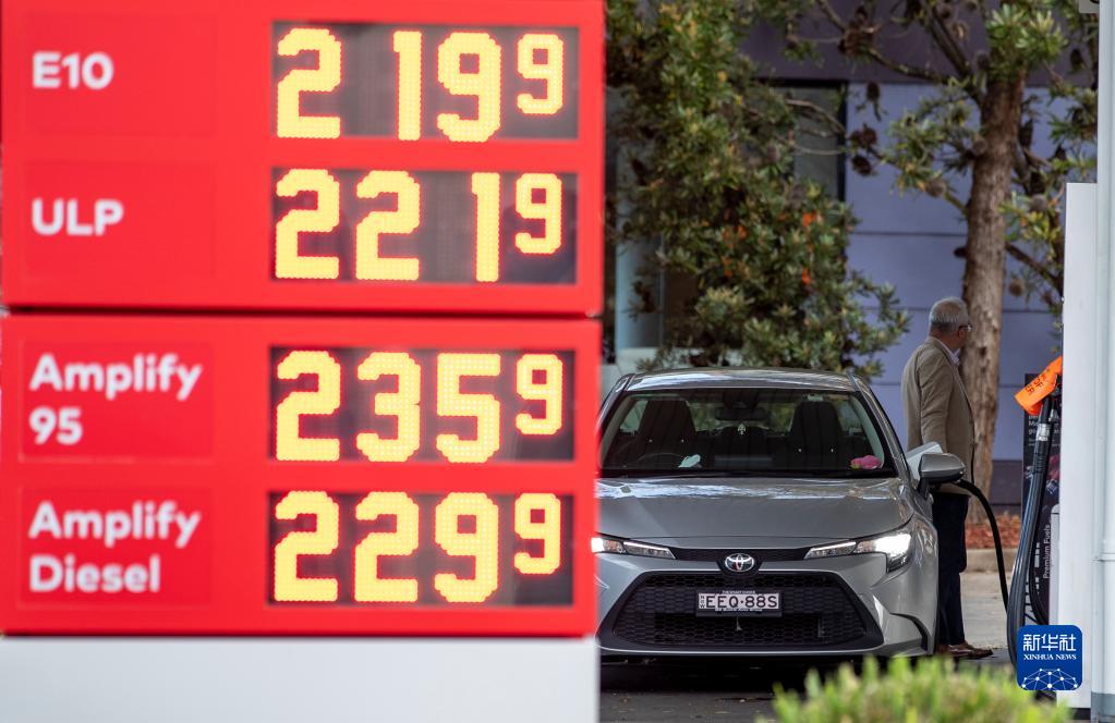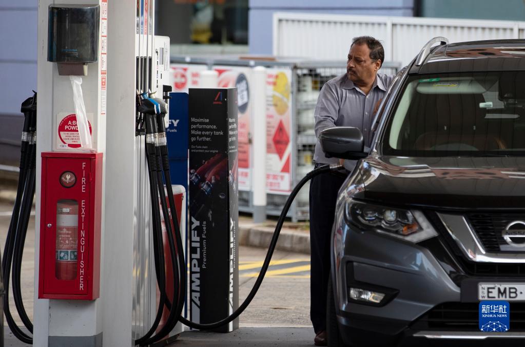 3月14日,一名男子在澳大利亚悉尼一处加油站给车加油。