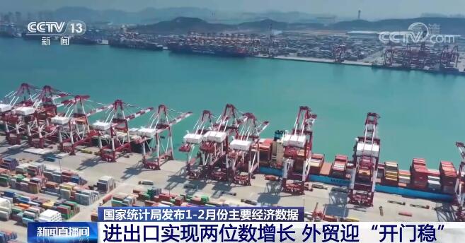 央视网消息:在今天(3月15日)的发布会上,国家统计局新闻发言人表示,近日,前两个月外贸数据公布,进出口仍然实现了两位数的增长,外贸迎来“开门稳”。