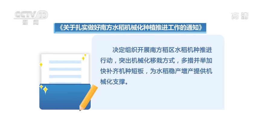 近日,农业农村部印发《关于扎实做好南方水稻机械化种植推进工作的通知》,决定组织开展南方稻区水稻机种推进行动,突出机械化移栽方式,多措并举加快补齐机种短板,为水稻稳产增产提供机械化支撑。