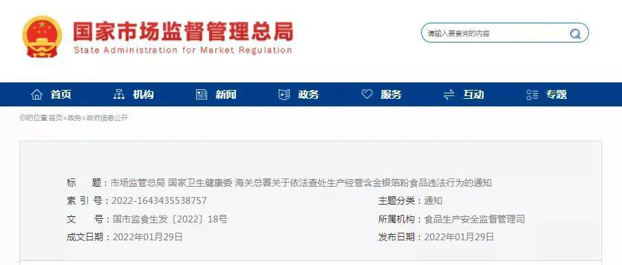 近日,市场监管总局、国家卫生健康委、海关总署联合印发通知,明确指出,根据我国食品安全法律法规及食品安全标准规定,金箔银箔、金粉银粉类物质不是食品添加剂,不能用于食品生产经营。