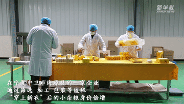 在宁夏中卫市海原县的一家企业,通过筛选、加工、包装等流程,“穿上新衣”后的小杂粮身价倍增。