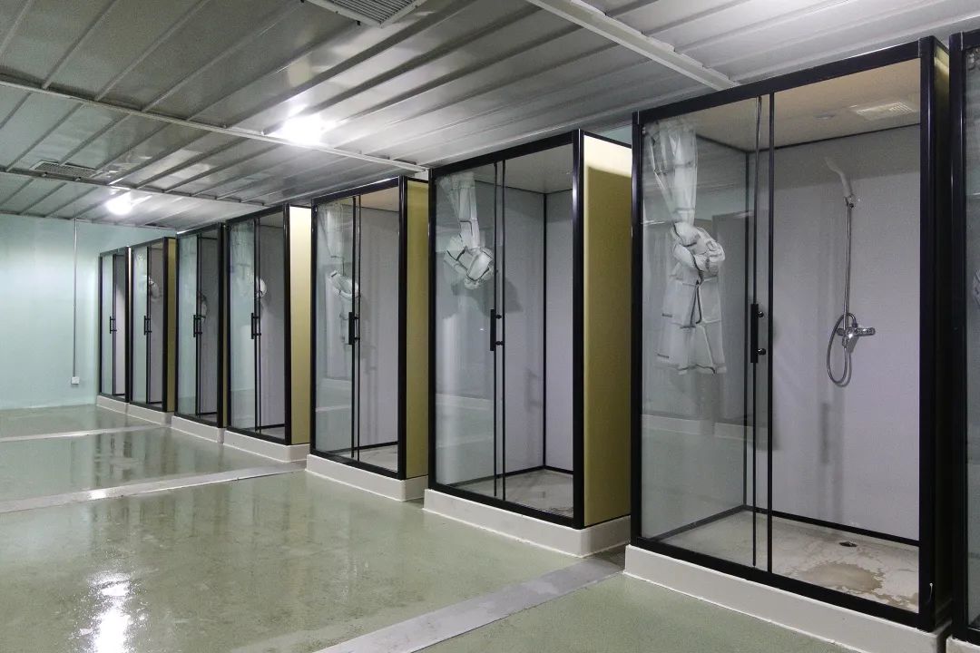 沈阳方舱医院应急工程总建筑面积约5.1万平方米,分两期改造建设,一期建筑面积3.1万平方米,可提供1000张治疗床位及1.3万平方米的医疗物资仓库;二期建筑面积2万平方米,改造完成后可再提供1000张治疗床位。方舱医院改造是按照“三区两通道”原则,对方舱医院按照清洁区、半清洁区、污染区进行功能分区。方舱改造二期工程目前施工进展顺利。
