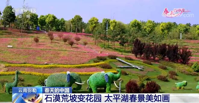 现在我们来到云南红河弥勒市太平湖旁的小太平村组,春草、春水、春花,山水间,浪漫柔美的春日图景令人心醉。而就在几年前,这里还是一片典型喀斯特地貌的石漠化荒山坡,村里大部分土地都是山地,坡度大、土层薄。2016年开始,当地通过加强县、乡、村三级联动,引导多元主体参与乡村治理,完成数千亩石漠化、贫瘠化土地改良,并集中流转,发展苗圃和旅游,小太平村成了远近闻名的生态宜居村。