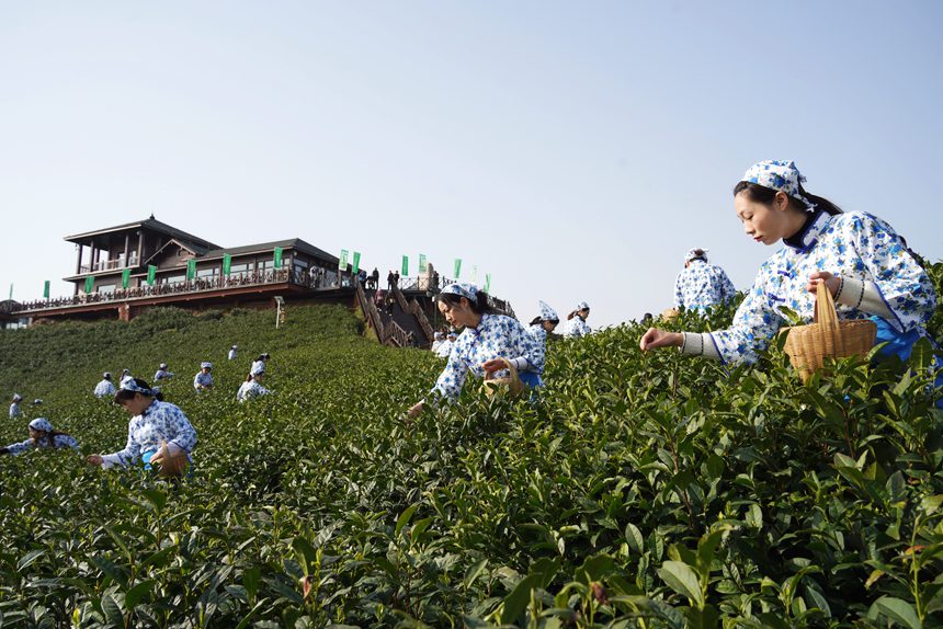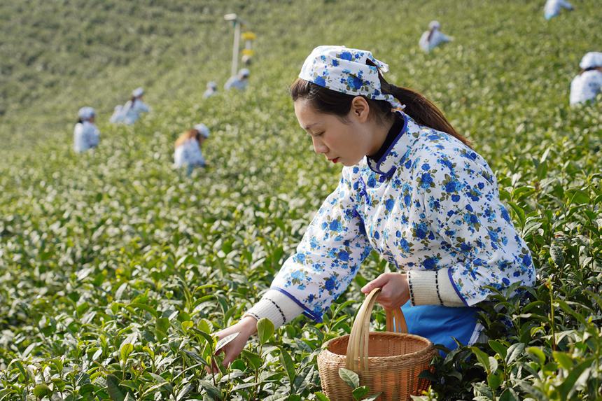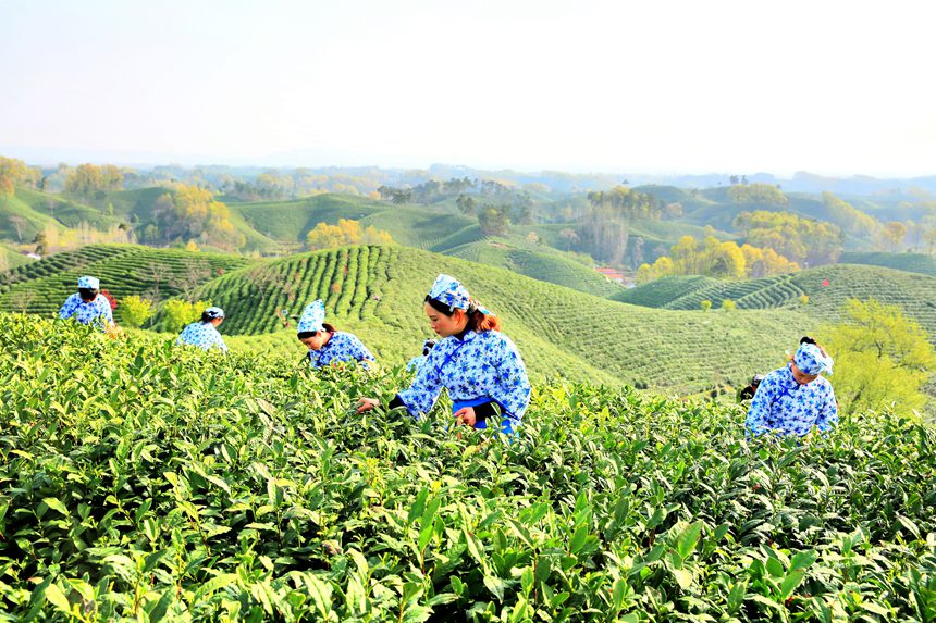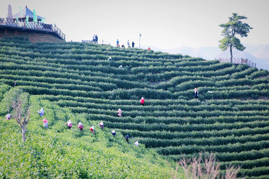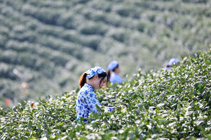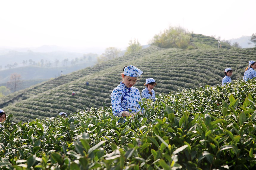 万亩茶山披绿装,毛尖采摘正当时。李春辉摄