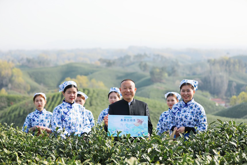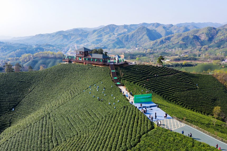 万亩茶山披绿装,毛尖采摘正当时。王贝贝摄