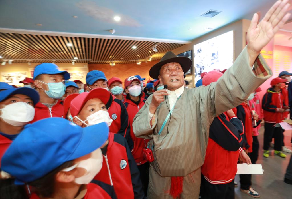 西藏百万农奴解放纪念馆里,普次仁和年轻讲解员们接力讲解。普次仁说:“帮助年轻的讲解员们更加了解这段历史也是我的责任,平时我会尽我所能帮助新一代的讲解员,也鼓励更多年轻人来了解历史。”