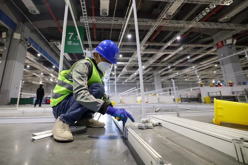 一位承建方的负责人在4月5日晚接受新华社采访时表示:“我们负责施工的展馆争取在4天内完工。”
