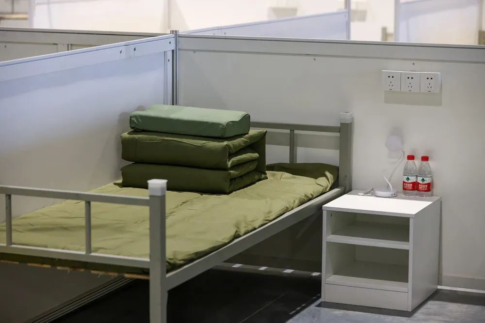 国家会展中心(上海)共有八个展馆。目前,多家承建方已进驻。4月6日,部分展馆已在搭建舱位,工人们在馆内忙碌。部分搭建完成的舱位,床褥和生活设施已基本配备。设计图显示,有展馆专门辟出了儿童区。