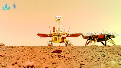 由祝融号火星车拍摄的“着巡合影”图。新华社发