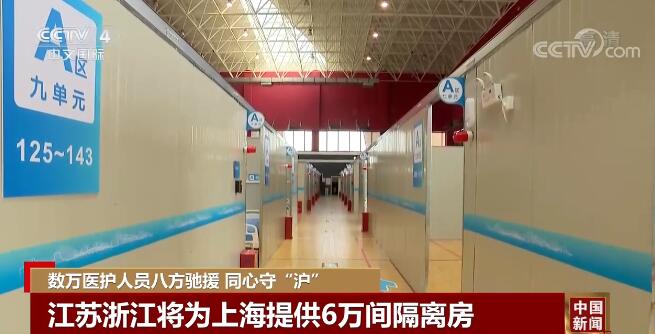根据国务院联防联控机制统一部署,江苏省、浙江省将各自紧急为上海市提供隔离房源3万间,用于上海市密接人员隔离使用。截至4月6日,江苏省已筹措并提供1.6万间,浙江省已筹措并提供2.1万间,剩余房源将于近日筹措完成。目前,上海市16个区已陆续开展转运工作,首批隔离人员已于4月4日转运入住。