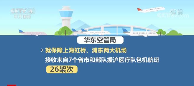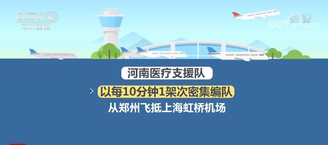 目前,中国15个省份已调派医务人员3.8万余人和每日238万管核酸检测能力支持上海。仅4月3日—4日,华东空管局就保障上海虹桥、浦东两大机场接收来自7个省市和部队援沪医疗队包机航班26架次。河南医疗支援队以每10分钟1架次密集编队从郑州飞抵上海虹桥机场。