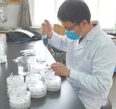 山东省东营市农业科学研究院盐生植物与生态农业研究所育种实验人员宁凯在做实验。资料图片