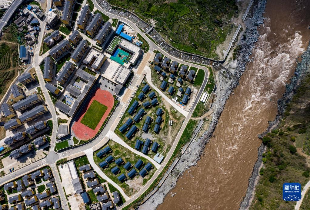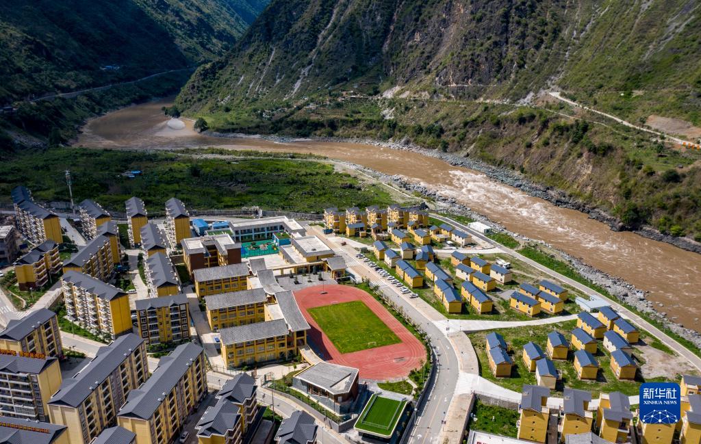 位于怒江边的云南省怒江傈僳族自治州泸水市大兴地镇格力小学(2020年5月18日摄,无人机照片)。