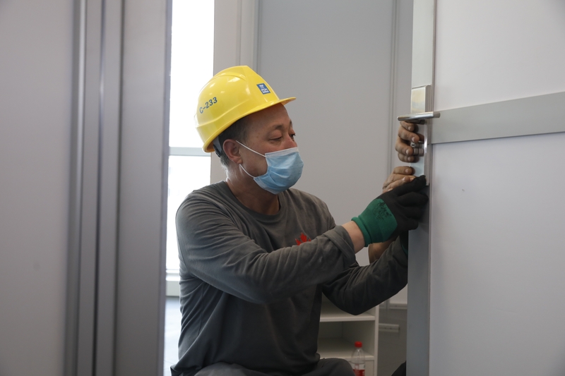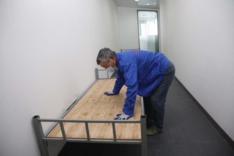 “人太少了,大家太累了!”这是井帅兵这几天挂在嘴边的口头禅。“这个体量的项目,做应急改造,4天时间完成,起码要有30人的管理团队、600人的工人队伍。”他摇摇头,又点点头,“各个区方舱建设任务不轻,工人完工后还要隔离,人手实在紧张。我们现在的打法,是7个管理人员加160个工人,24小时不间断工作。大家轮流打地铺,睡几个小时接着干。”