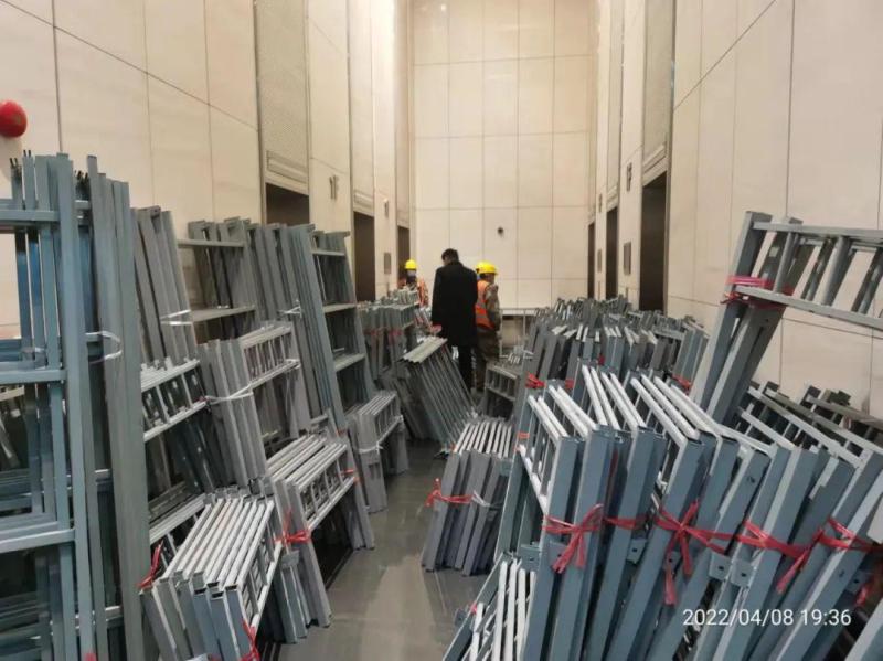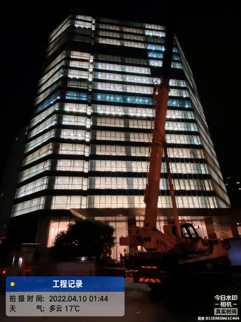 9日9时,80%材料从外省市“蜂拥而至”,现场团队一边协调材料接收进场,一边确保重要工序穿插不停。当日24时,完成逾3万平方米、16个楼层的材料运输,以及6个楼层的隔断、机电等安装工作。