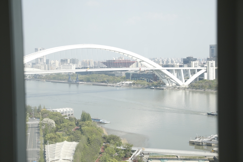 由大型体育馆、展览馆改造成的方舱,空间较大,但相对没有自然采光。相比之下,这家由写字楼改造而成的方舱,不仅采访充足,而且高楼层还有着无敌江景。静静的黄浦江里渡船缓缓驶过,跨江的卢浦大桥展现简洁之美,远处的中华艺术宫巍峨耸立,对岸的前世博园区展露浓浓春意……正在忙着扫地的阿姨自言自语,“在这里治疗,看着江景心情好,恢复也会快一些!”