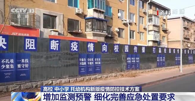 央视网消息:国家卫生健康委和教育部今天(4月12日)印发了高等学校、中小学校和托幼机构新冠肺炎疫情防控技术方案第五版。修订后的这三个技术方案,在进一步强化常态化疫情防控管控要求基础上增加了校园常态化监测预警,细化完善了出现疫情后的应急处置措施和卫生保障要求。