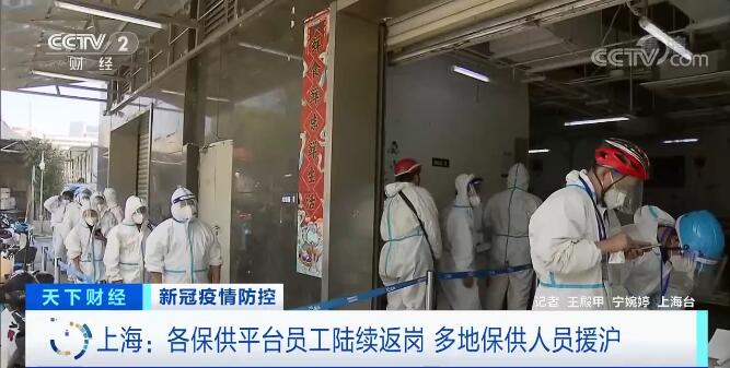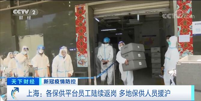 央视网消息:为保障物资配送,上海多家保供企业正在全国统筹调配资源,引进充实保供人员。本地非涉疫原因被封控在小区的快递人员等保供人员,也陆续走出封控区,回到保供岗位。