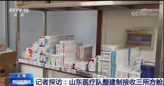 总台记者 王殿甲:我现在就在上海石龙路方舱医院舱内清洁区的储物间。可以看到,这里为舱内准备了一些消炎药、止痛药,这些药品可以满足三天的使用量。